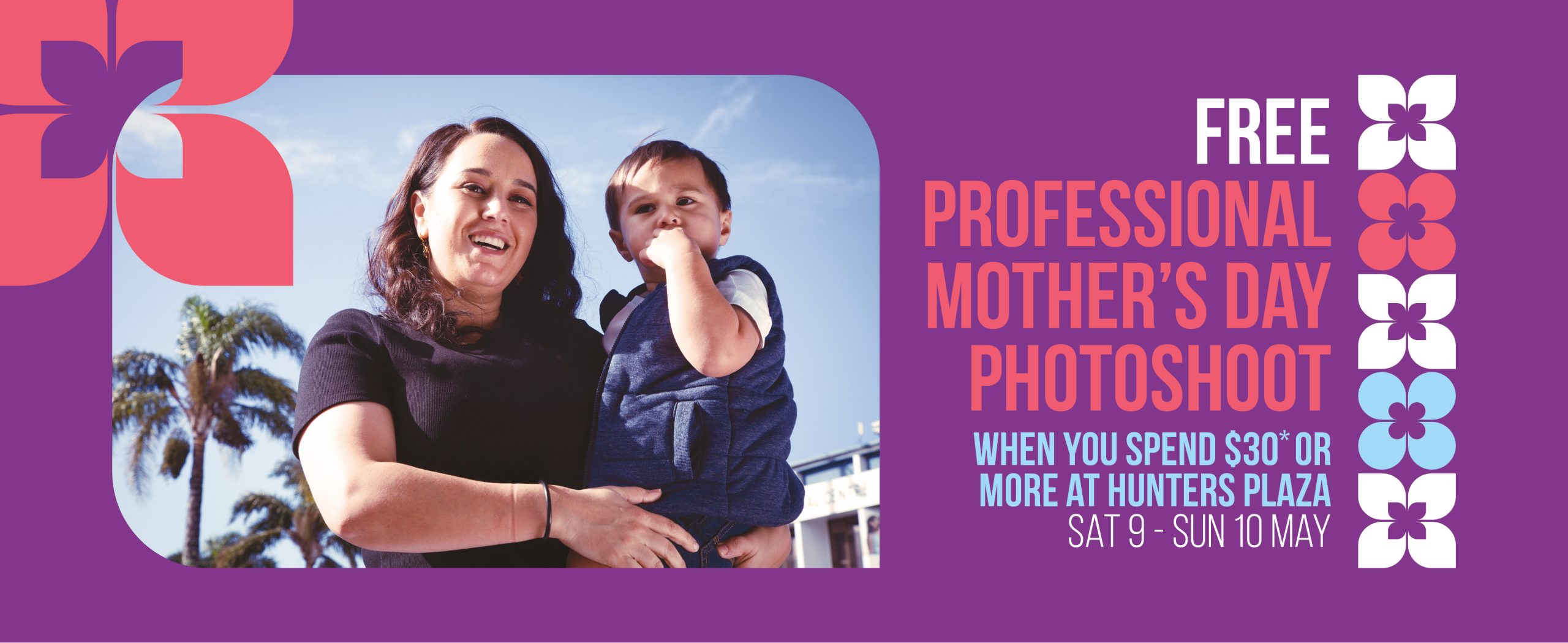This Mother’s Day, we’re making it a little easier. Enjoy a FREE 5–10 minute professional photography session on 9–10 May, from 11am–2pm, when you spend $30* or more at Hunters Plaza.