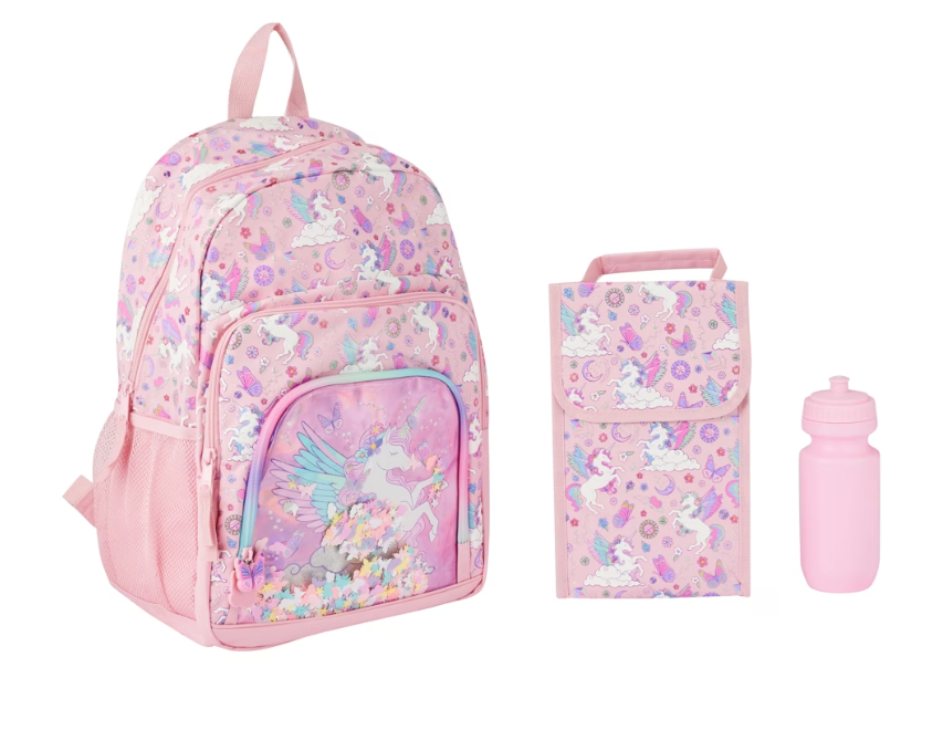 Turn school days into magical adventures with the 3 Piece Unicorn Backpack Set! Complete with a backpack, lunch bag and drink bottle!