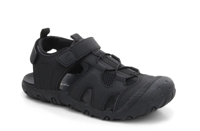 Comfy and durable junior sports sandals in classic black - perfect for active school days with easy-to-wear straps and breathable design that keeps feet supported from classroom to playground.