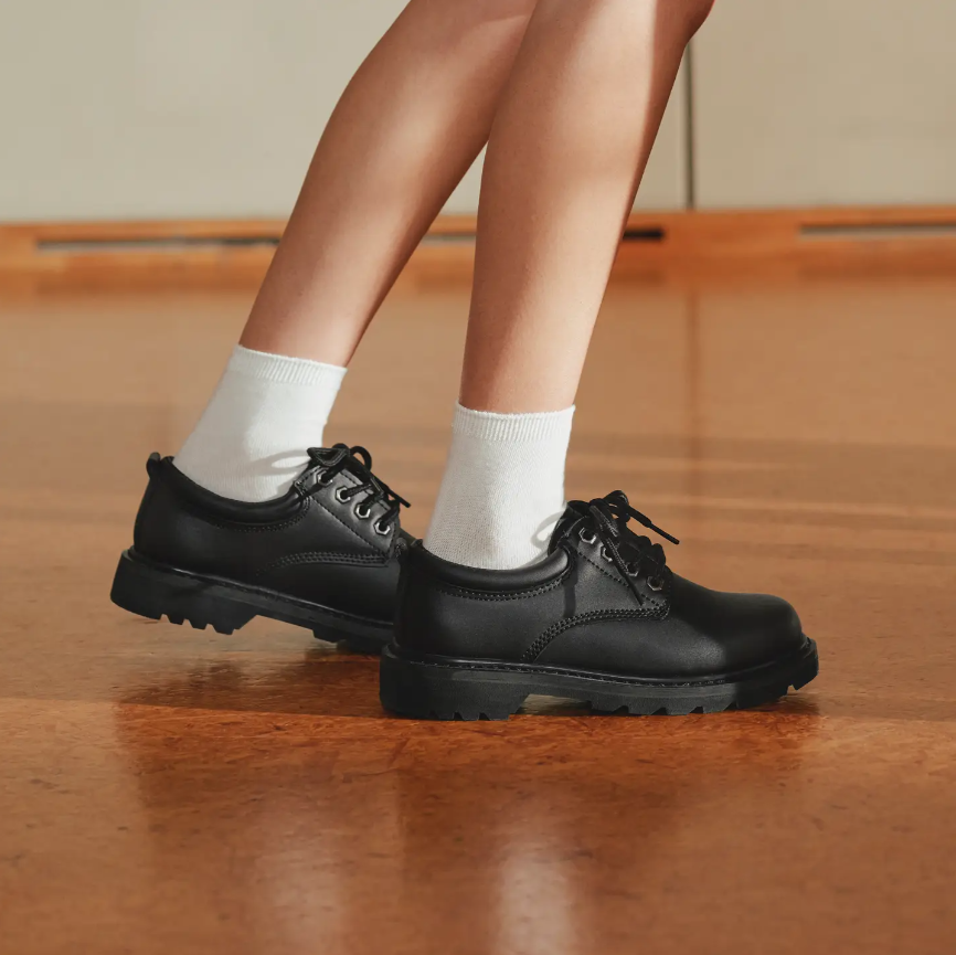 Smart, classic and built for everyday school wear, these senior school shoes feature a traditional black leather look with a lace-up design for a secure fit.
