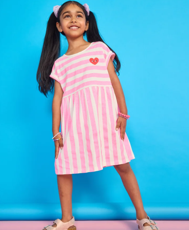 Brighten up your little one’s wardrobe with our Little Kids' Printed Stripe Knit Dress. Featuring playful stripes and a comfy, relaxed fit, it’s perfect for twirling through any day.